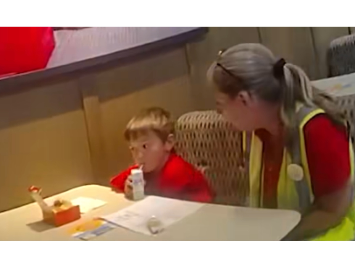 Os policiais encontraram o garoto, William, aproveitando seu café da manhã com um dos gerentes do restaurante.
