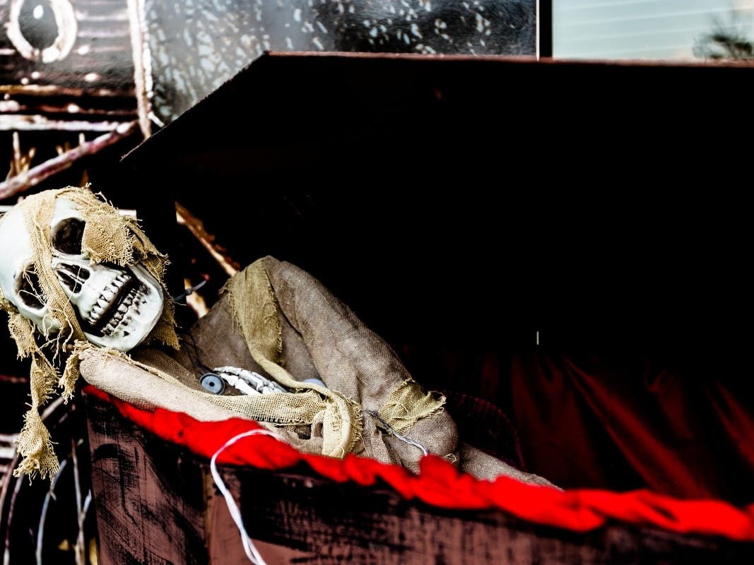 Ao virar da esquina em um bairro médio na América, um esqueleto de 6 metros paira sobre as lápides de isopor em grama ainda verde. Uma caixa de casal de tamanho vital é a Sentry. Uma bruxa tende um caldeirão que arrota fuma quando alguém passa.