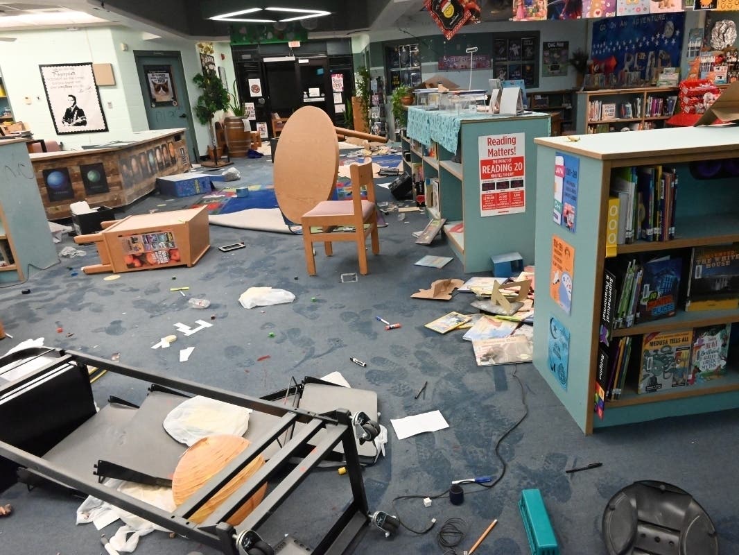 Eles invadiram a escola durante o dia e depois voltaram mais tarde para olhar os danos e causar mais, disse o escritório do xerife.