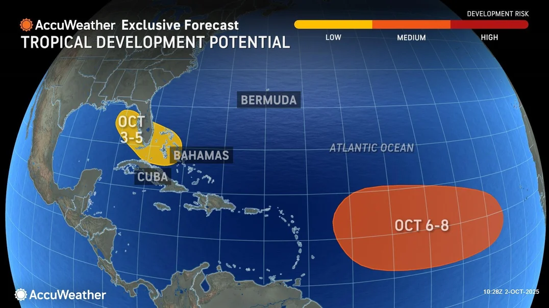 Esse sistema de baixa pressão pode levar a ventos fortes e chuvas e trovoadas generalizadas de sábado a segunda -feira na Flórida, o Golfo Oriental e o Sudeste, aumentando o risco de inundações repentinas em toda a região, Especialistas em furacões da Accuweather disse.