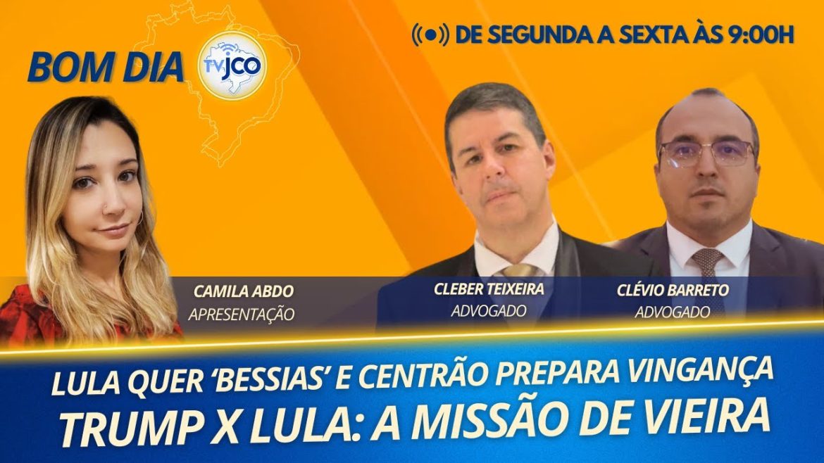 O Bom Dia, JCO recebe o advogado Cleber Teixeira, do canal Jacaré de Tanga, e o advogado Clévio Barreto. Apresentação de Camila Abdo