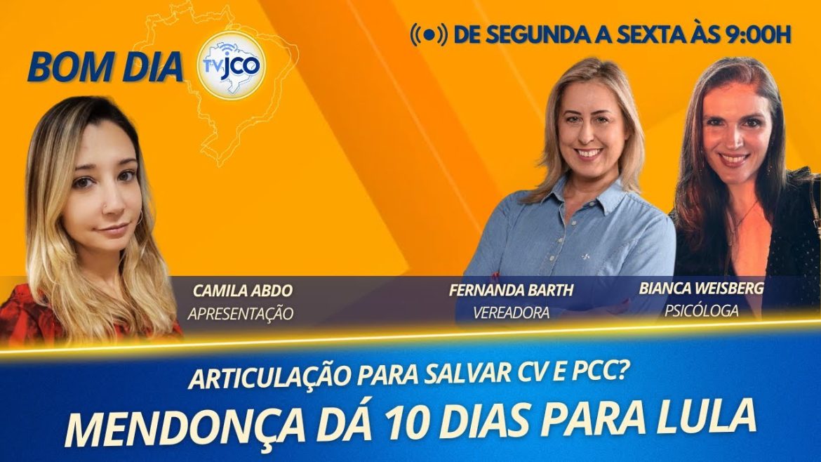 O Bom dia, JCO recebe a vereadora Fernanda Barth e a psicóloga Bianca Weisberg. Apresentação de Camila Abdo