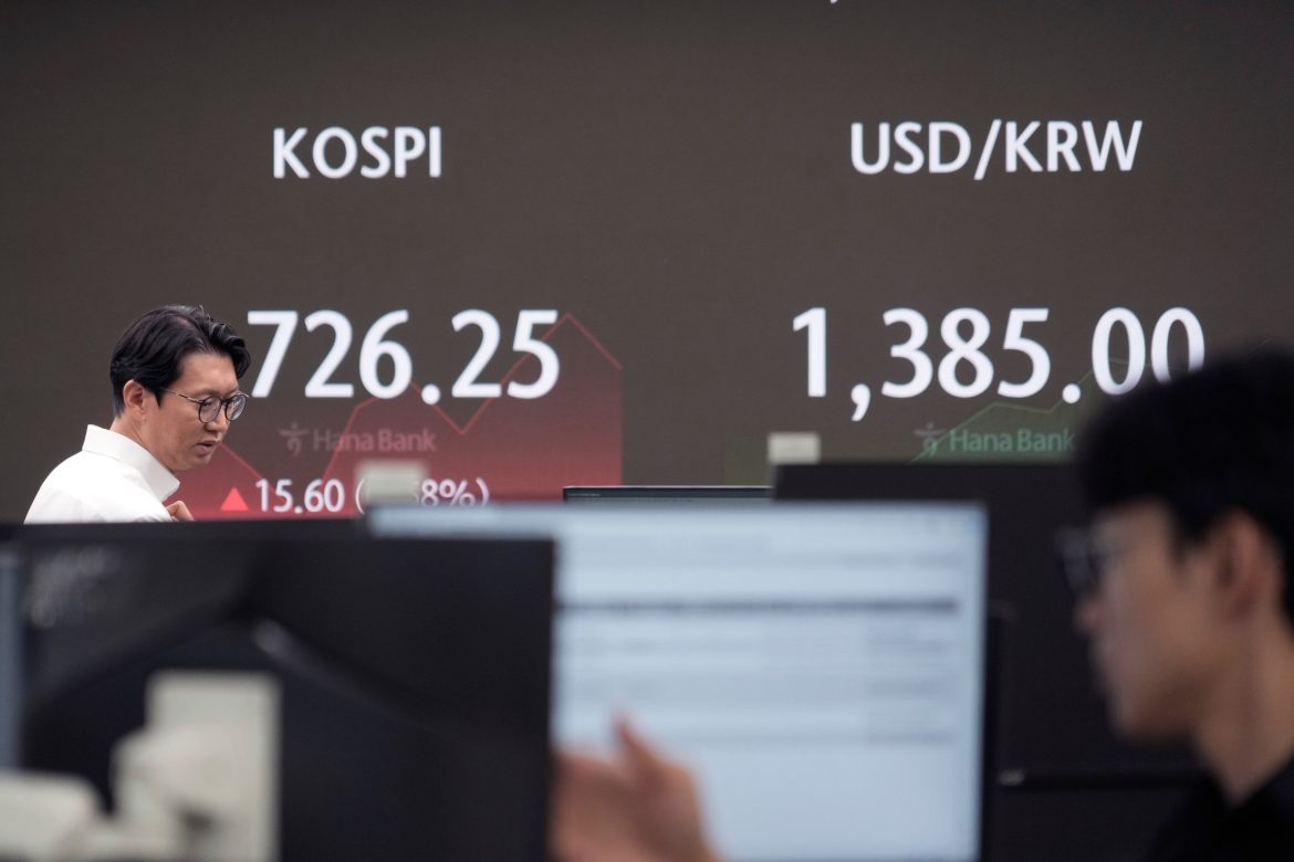 O Taiex de Taiwan caiu 3,3% ao reabrir após os mercados terem sido fechados na quinta-feira devido a uma tufão. Estava acompanhando o recuo em Wall Street na quarta-feira, que foi a pior queda do S&P 500 desde 2022. A Taiwan Semiconductor Manufacturing Corp. caiu 5,6%, acompanhando declínios contínuos nas grandes empresas de tecnologia.