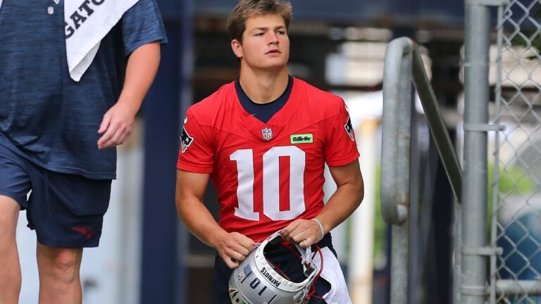 Drake Maye fez duas das jogadas mais notáveis em Patriotas praticam na sexta-feira. Um foi a seu favor, e o outro não.
