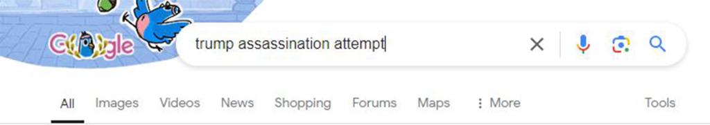 Até mesmo as palavras-chave “Trump assassination attempt” não geraram termos adicionais do Google.