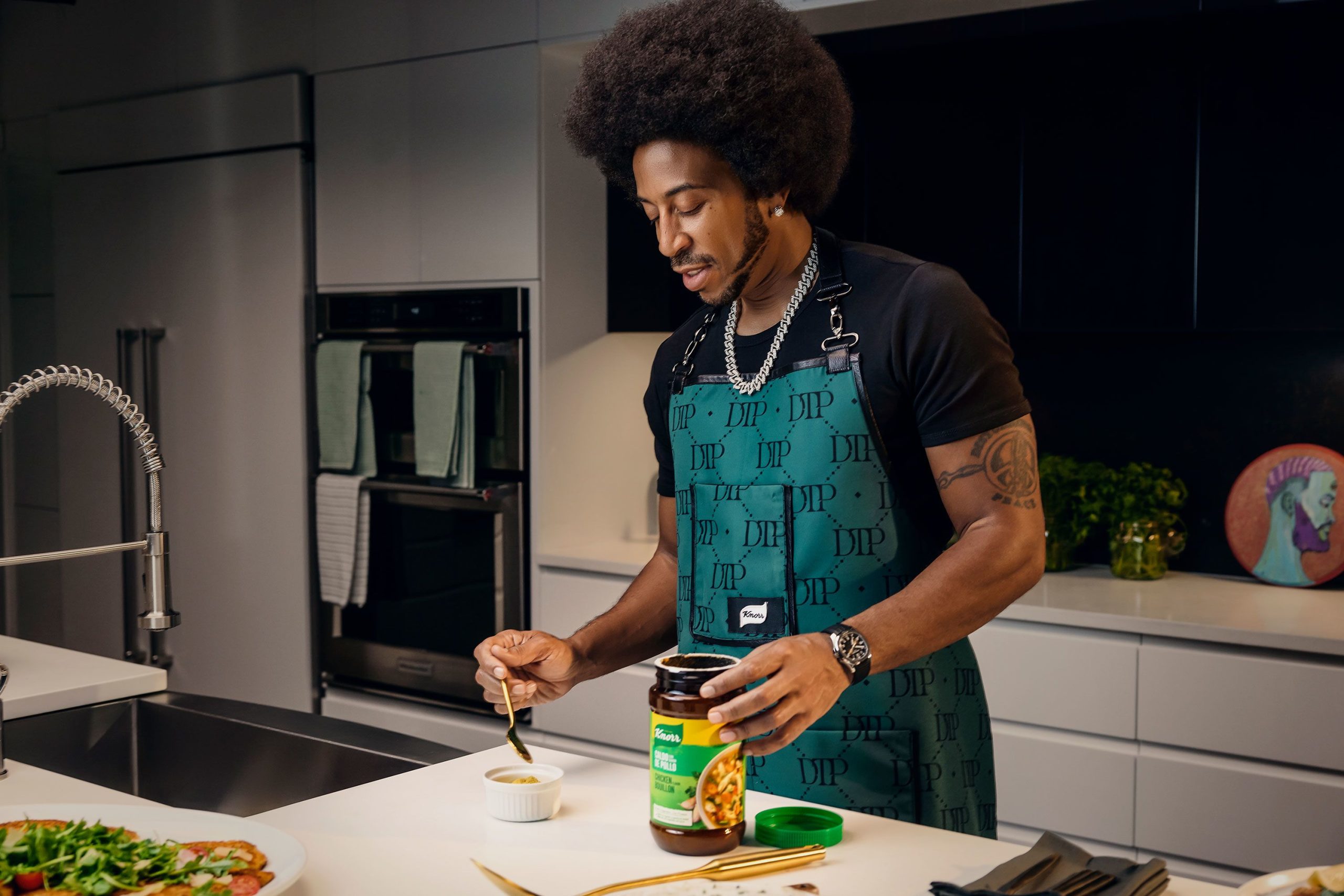 “Muitos de nós, você sabe, às vezes estamos com pouco tempo e todos nós pegamos comida que está disponível na hora ou nos apressamos e pegamos fast food que não é nutritivo”, ele disse. “E é por isso que estou fazendo parceria com a Knorr para que possamos dar às pessoas melhores opções que sejam rápidas.”