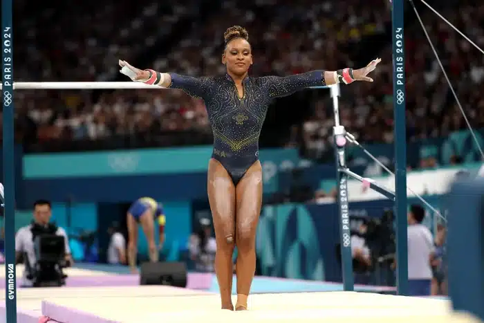 Rebeca Andrade, principal nome da ginástica artística brasileira, desempenhou um papel crucial na conquista da medalha. A ginasta, conhecida por sua habilidade técnica e precisão, brilhou em todas as apresentações, começando com uma performance impecável nas barras assimétricas.