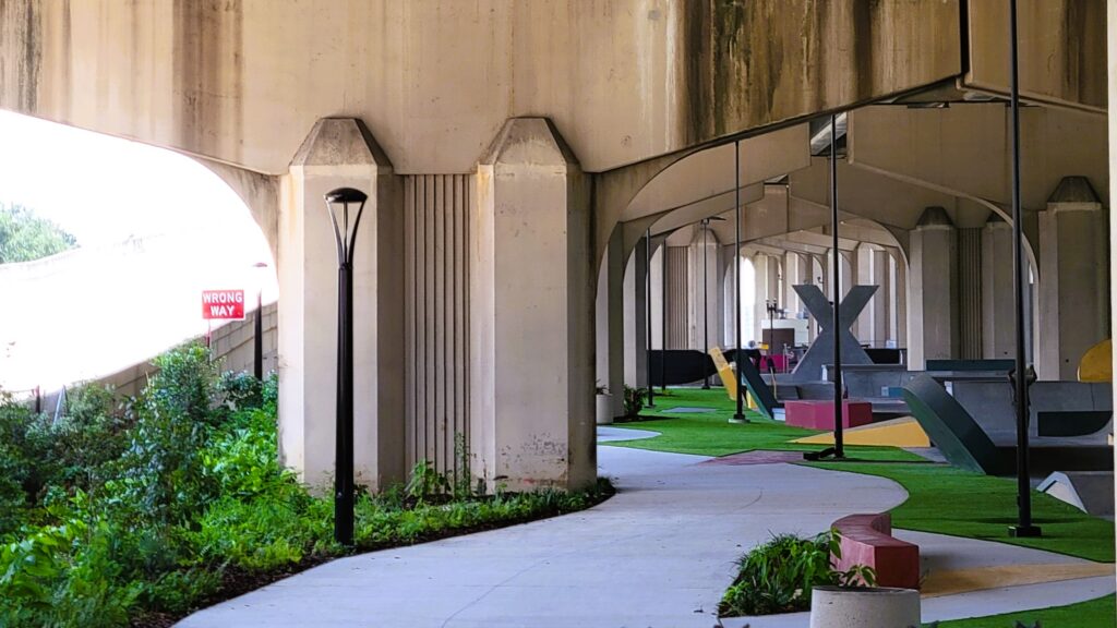 A construção do parque sob a ponte eliminará o que muitos viam como uma “barreira gigante” entre as comunidades de Riverside e Brooklyn, disse Peluso.