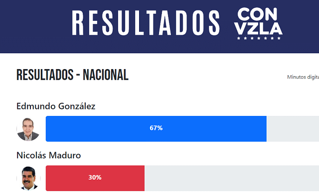 Com 81,21% das atas já escrutinadas, Edmundo González Urrutia teria obtido 67% dos votos, comparado aos 30% de Nicolás Maduro. A plataforma disponibiliza a ata de cada mesa de votação, permitindo uma análise transparente e minuciosa dos resultados.