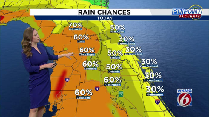 ORLANDO, Flórida. – A umidade adicional no ar nos próximos dias aumentará as chances de chuva e as temperaturas na Flórida Central.