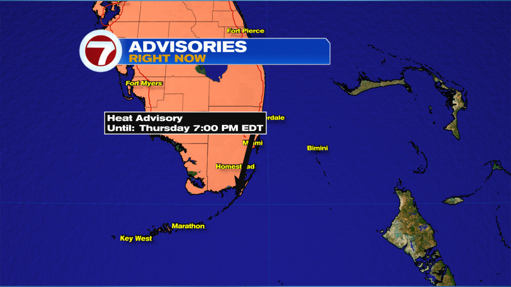 As condições estarão muito quentes novamente hoje, então um Heat Advisory estará em vigor para TODA a Flórida hoje. Para Broward, Miami-Dade e Florida Keys, começa às 10h.