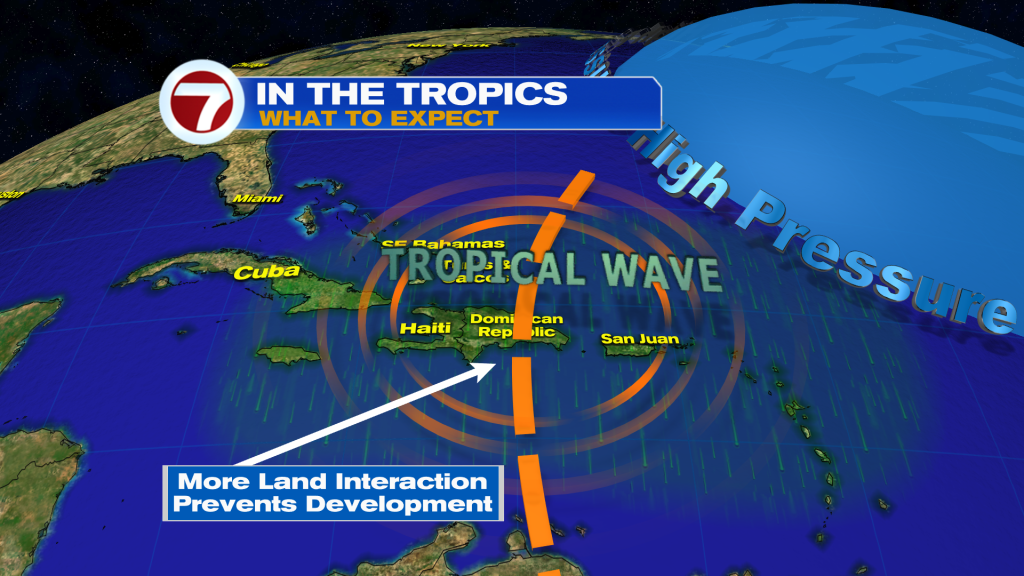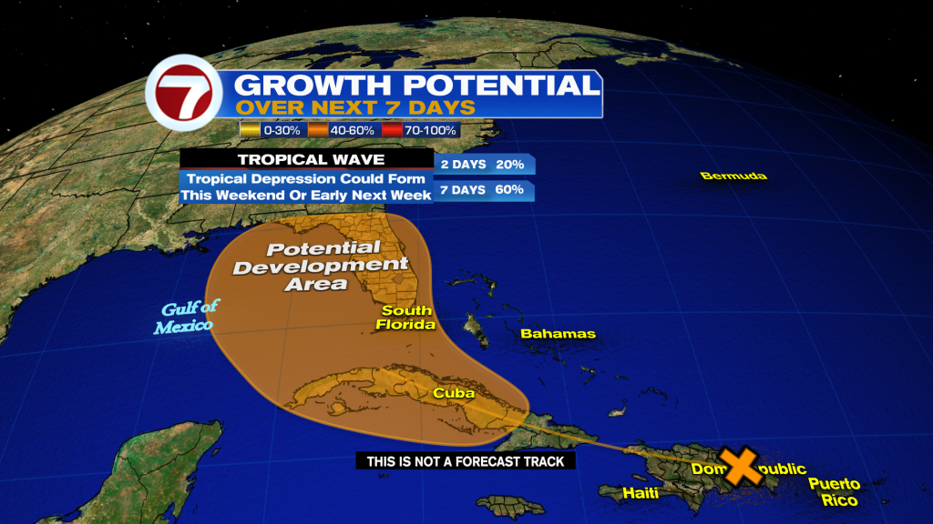 O National Hurricane Center está monitorando de perto o progresso de um tropical bem definido produzindo muitas chuvas e tempestades sobre Hispaniola, Porto Rico e as Ilhas Virgens. Parece que as condições serão mais favoráveis à medida que ele passa pelas Grandes Antilhas e uma depressão pode se formar no Golfo Oriental ou perto da Flórida neste fim de semana.