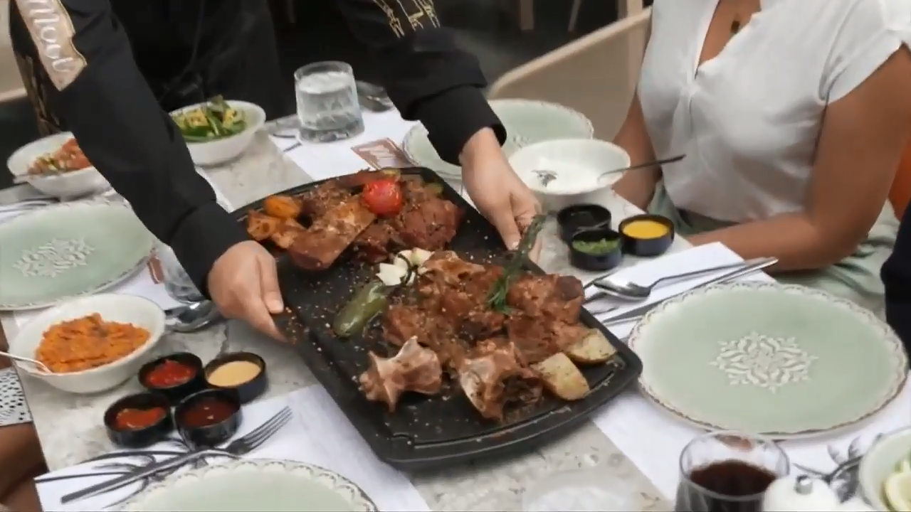 Neste restaurante, os clientes podem escolher entre sete cortes diferentes de carne bovina ou de cordeiro defumada.