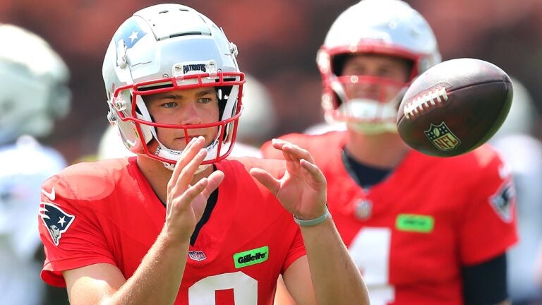 Jerod Mayo disse que ainda não decidiu se Drake Maye jogará na partida de pré-temporada dos Patriots na quinta-feira. John Tlumacki/Equipe Globe