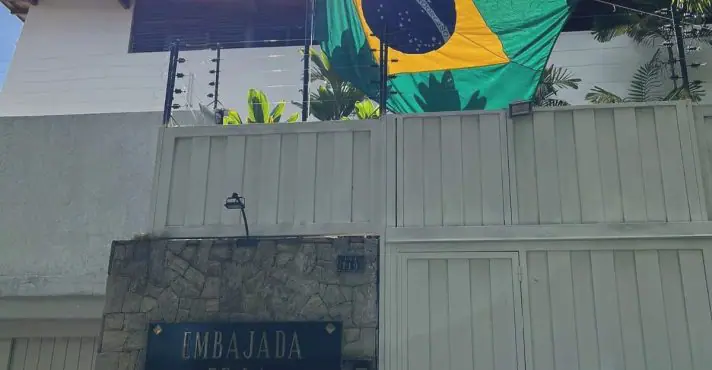 O Brasil aceitou cuidar das embaixadas argentina e peruana na Venezuela. A diplomacia brasileira mantém o contato com o governo venezuelano e se posiciona como um dos principais intermediários nas negociações diplomáticas. Segundo o governo Luiz Inácio Lula da Silva, a retirada da bandeira foi uma medida para evitar tensões excessivas.