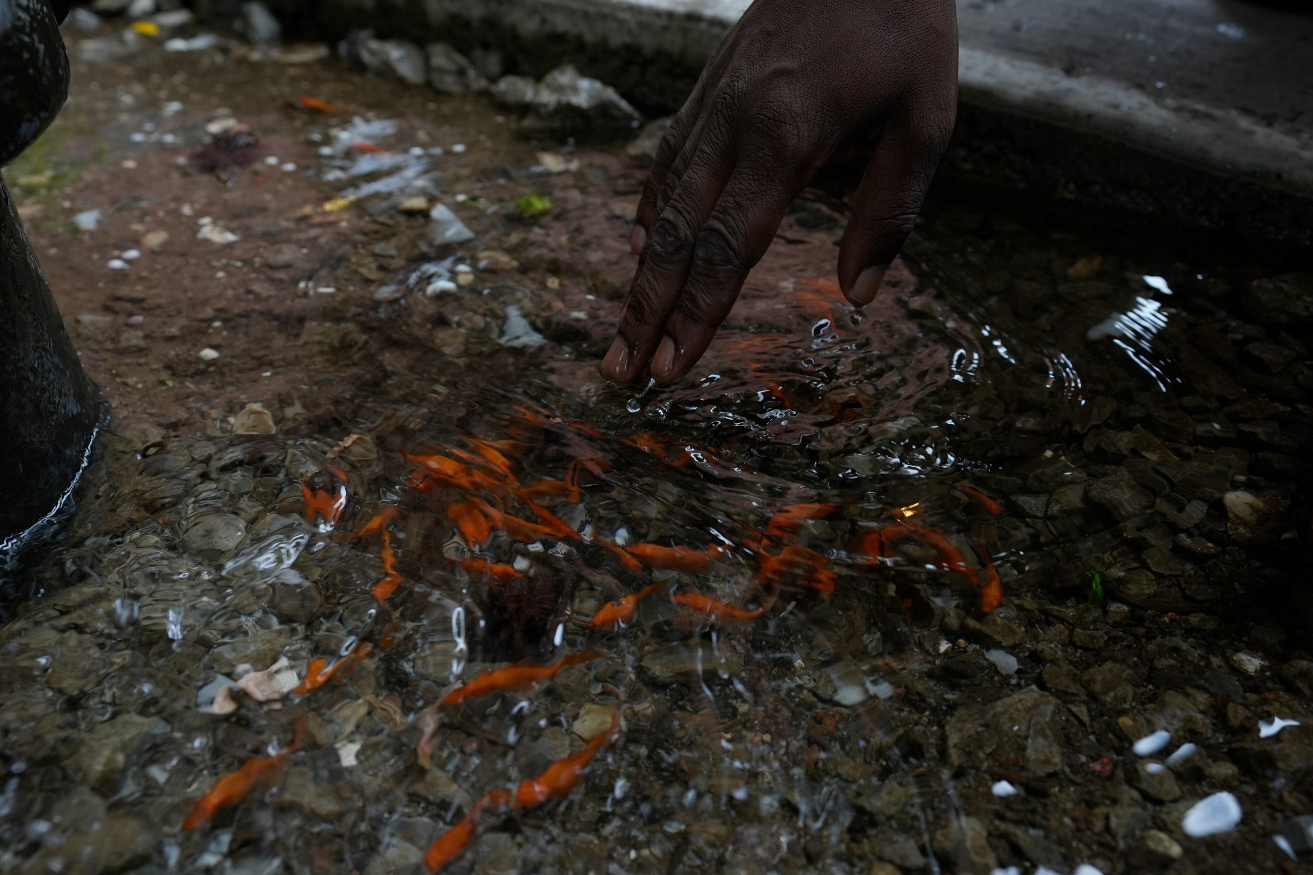 Na tarde de sexta-feira, dezenas de peixes ainda estavam nadando no poço.