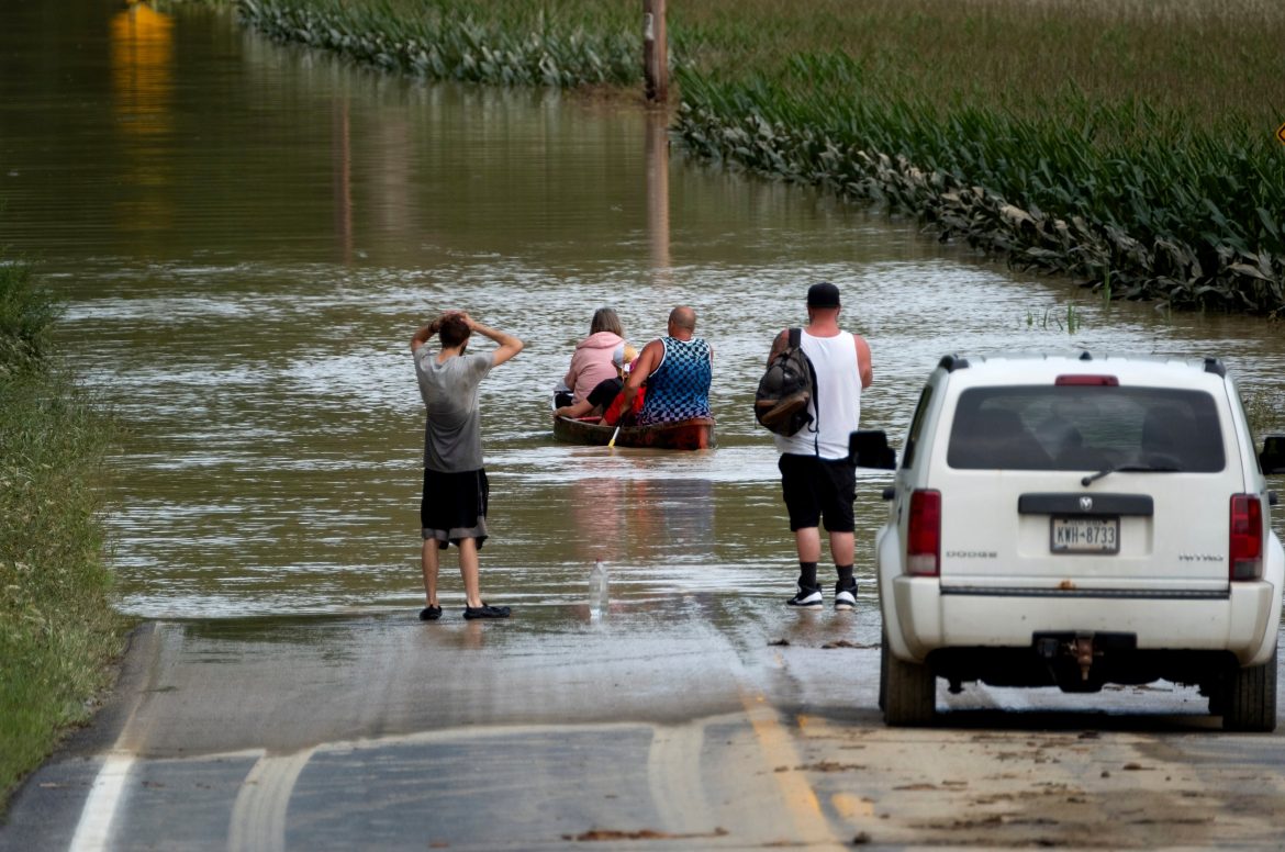 No vilarejo de Woodhull, um riacho inchado pela chuva transbordou de uma ponte. A moradora da área Stephanie Waters disse que partes de galpões, galhos e árvores arrancadas estavam entre os destroços que atingiram o vão.