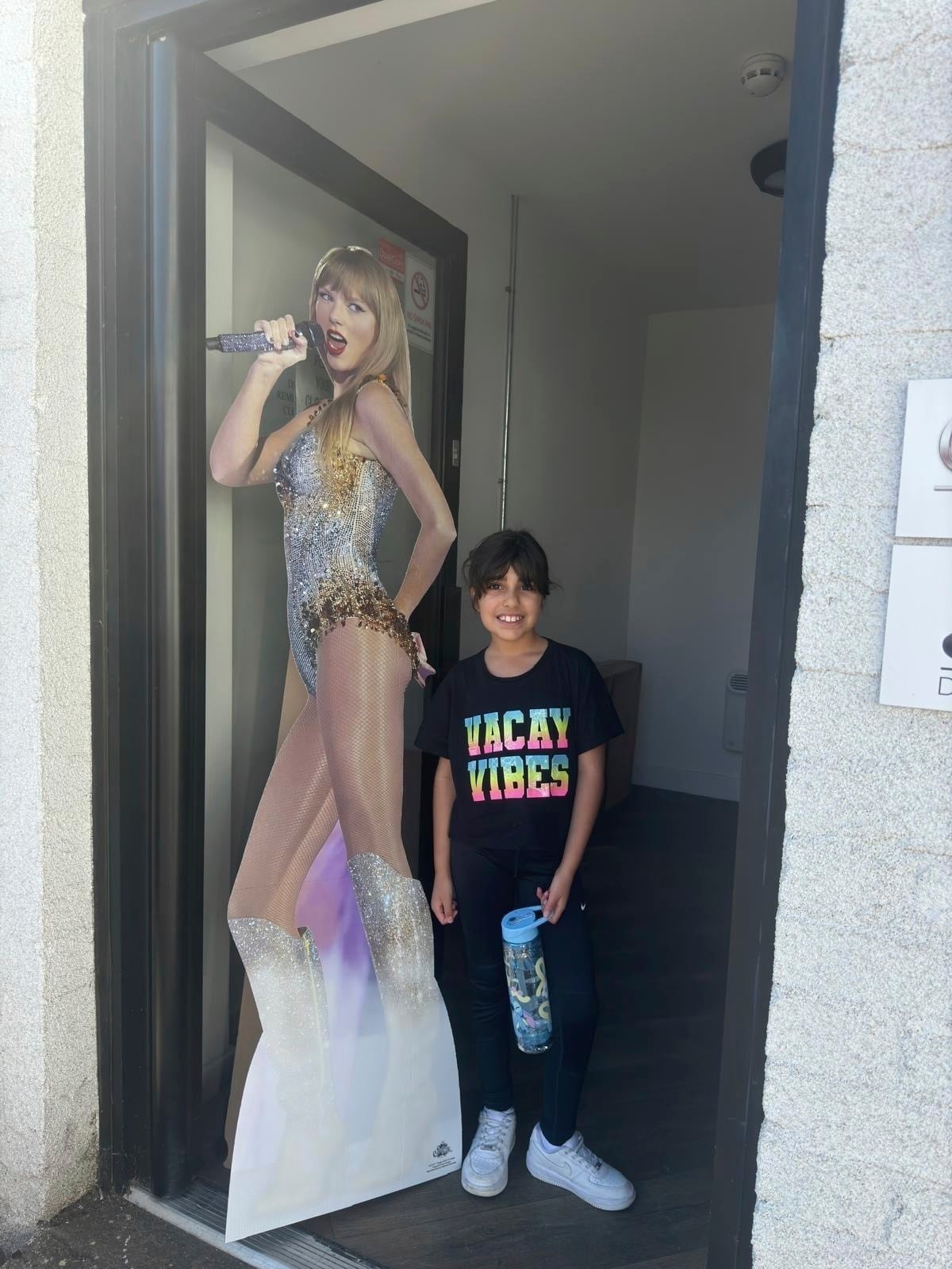 No domingo, seus pais divulgaram uma foto de Alice parada ao lado de um recorte de papelão de Swift enquanto esperava sua última aula de dança começar.