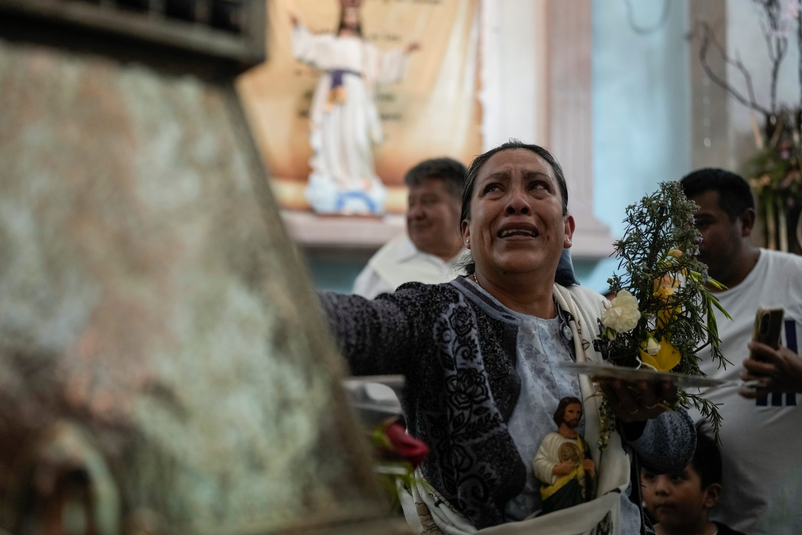 “Nossa fé aqui é dividida”, disse Arturo Espinosa, 52, de pé perto de um altar improvisado carregando uma figura de São Judas. “Há muita fé aqui em Xochimilco e a Niñopa é nossa principal representante, mas também temos outros emblemas e participamos dessas celebrações.”