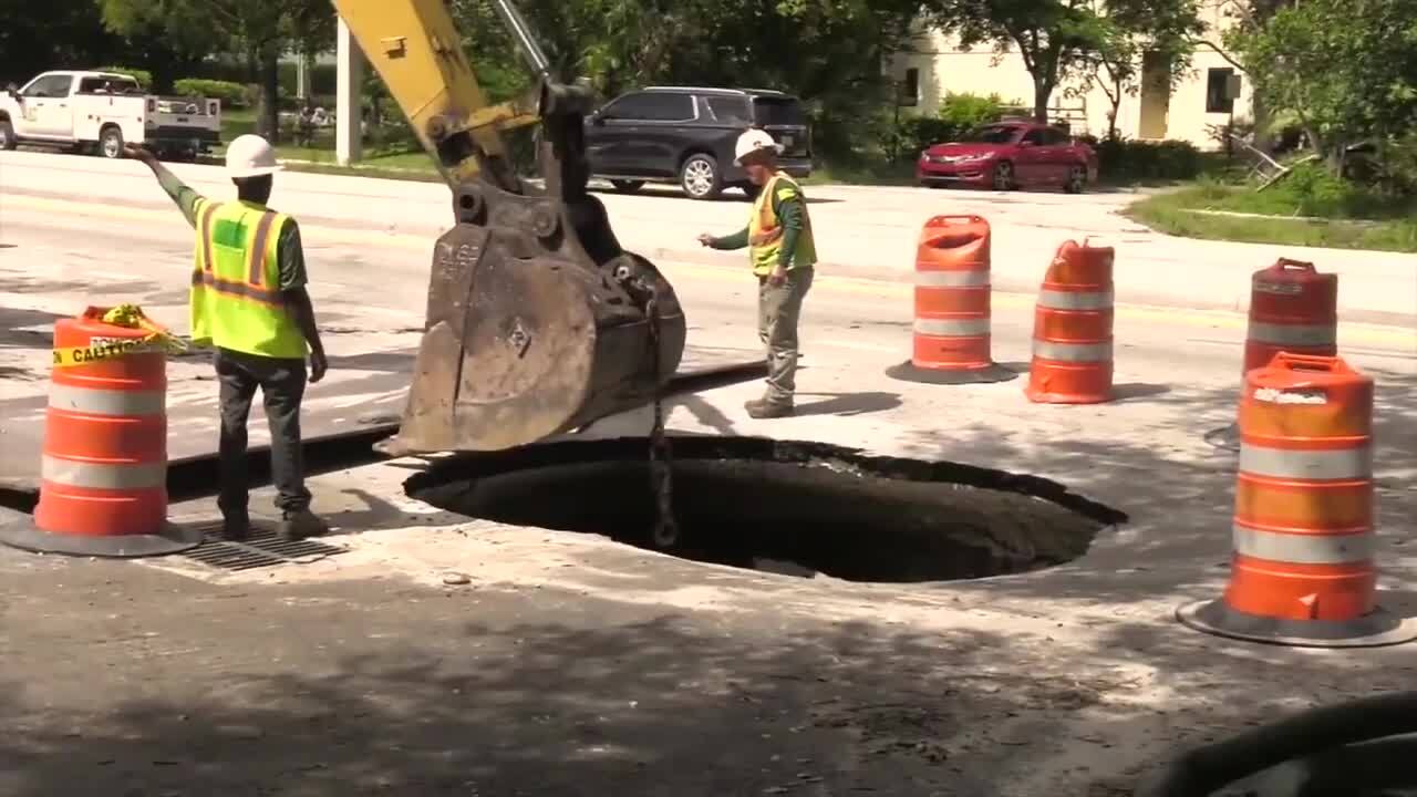 TAMARAC, FL. (WSVN) – Um buraco se formou em uma estrada em Tamarac.