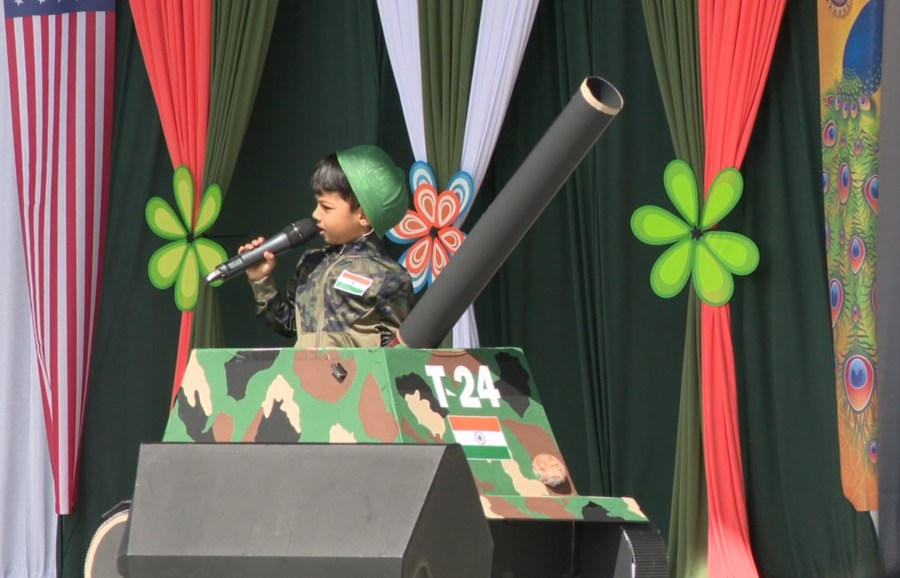 O domínio britânico sobre a Índia terminou em 1947 após anos de protestos e resistência. As crianças fizeram apresentações e terminaram com a frase “jai hind”, um slogan nacional que surgiu quando a Índia lutava pela independência.