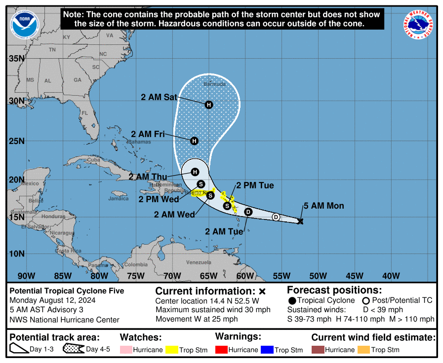 O potencial ciclone tropical 5 se formou no fim de semana no Atlântico.