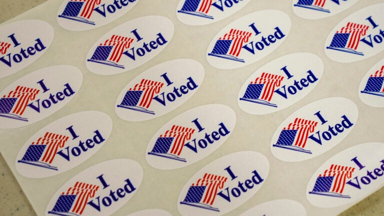 Adesivos “Eu votei” são colocados em um local de votação. (Foto AP/Matt Rourke)
