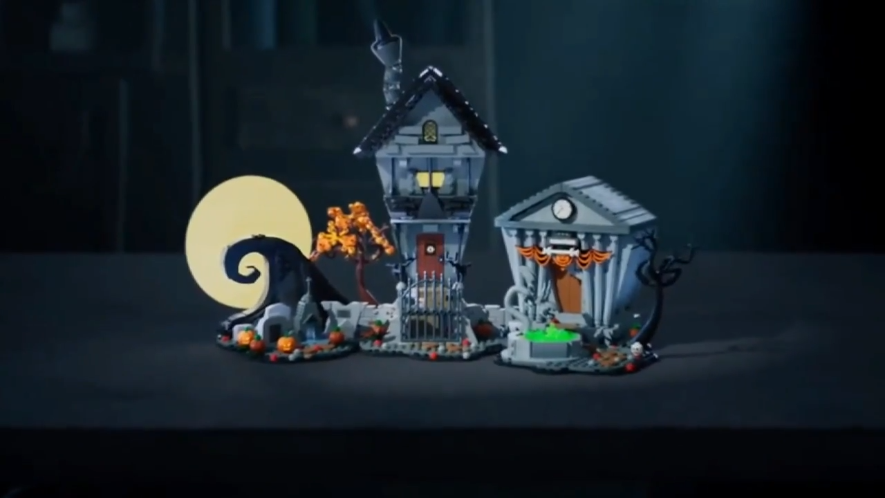 O diorama de Lego inclui 2.193 peças e oferece aos fãs a oportunidade de construir versões detalhadas de Spiral Hill, da casa de Jack Skellington e do Halloween Town Hall.