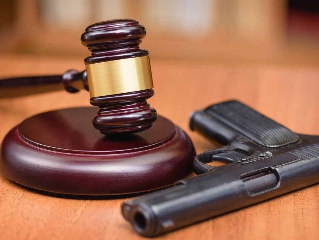Como criminoso condenado, ele está proibido de possuir armas de fogo ou munição pela lei federal.