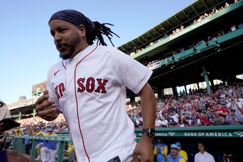 O ex-jogador do Boston Red Sox, Manny Ramirez, entra em campo no Fenway Park antes das cerimônias realizadas para presenteá-lo com sua placa do Hall da Fama do Boston Red Sox antes de um jogo de beisebol contra o Detroit Tigers, segunda-feira, 20 de junho de 2022, em Boston. (Foto AP/Steven Senne)PA-AP