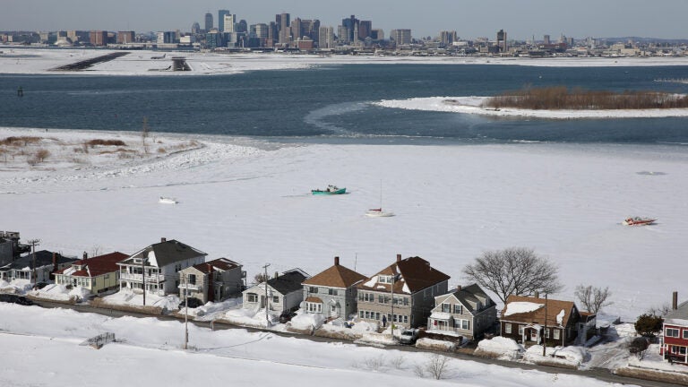 Uma vista articulada da costa de Winthrop em direção ao Aeroporto Logan e à cidade de Boston. David L Ryan/Foto da equipe do Boston Globe, arquivo