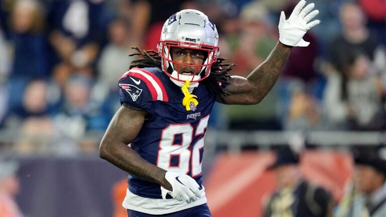 Receptor dos Patriots JaQuae Jackson deixou o jogo de pré-temporada de quinta-feira contra os Eagles com uma lesão na perna sofrida no quarto período.