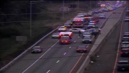 De acordo com o Departamento de Transporte (DOT), vários veículos se envolveram no acidente que aconteceu entre as saídas 75 e 74 no lado sul por volta das 17h. Câmeras na rodovia mostram ambas as faixas fechadas, com veículos conseguindo passar na faixa de avaria.