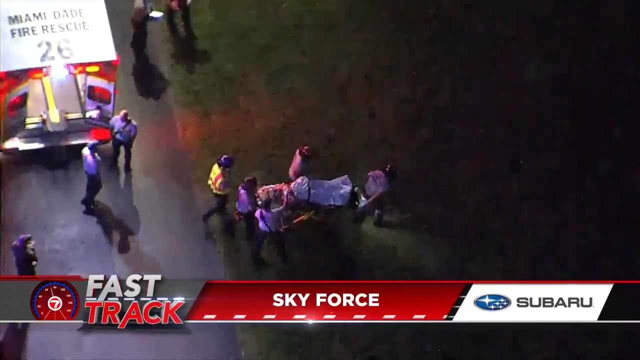 MIAMI GARDENS, FLÓRIDA (WSVN) – Uma pessoa que se acredita ter se envolvido em um acidente de scooter foi transportada de helicóptero para um hospital próximo na terça-feira de manhã após ser transferida de uma ambulância para um helicóptero de resgate aéreo.