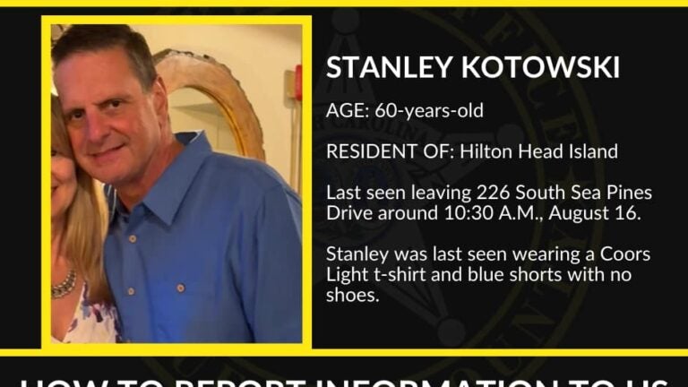 Gabinete do Xerife do Condado de Beaufort relatado que Stanley Kotowski, 60, foi visto pela última vez na sexta-feira, 16 de agosto, por volta das 10h30 na área de South Sea Pines Drive.