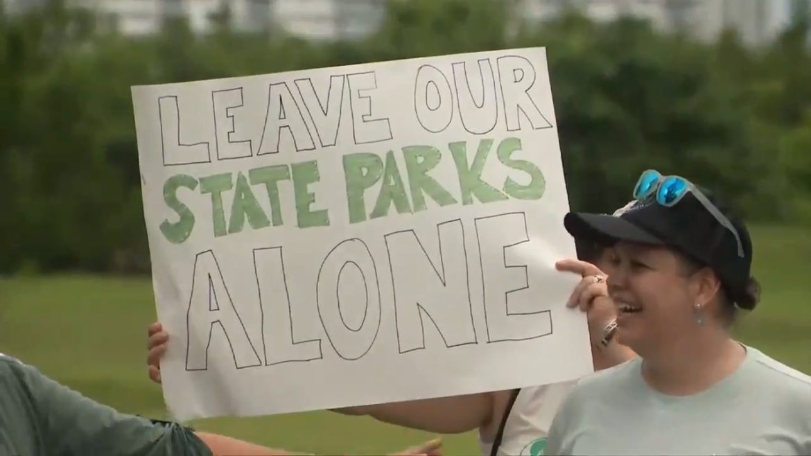 Os manifestantes disseram ao 7News que querem manter seus parques estaduais para a natureza e que o desenvolvimento recreativo deveria acontecer em outro lugar.