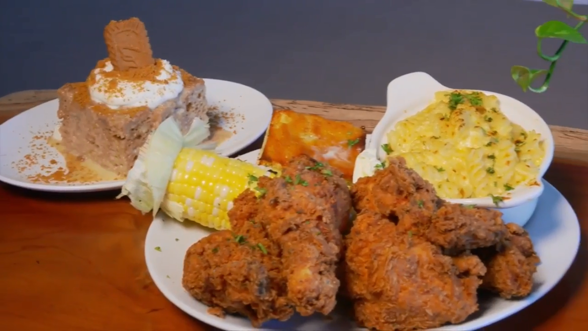 Chef Nikol Zarbalas: “Todo mundo está postando sobre nosso frango frito. Ele vem com macarrão com queijo caseiro, pão de milho feito com jalapenos e cheddar, uma espiga de milho assada no fogo, quero dizer, é um banquete.”
