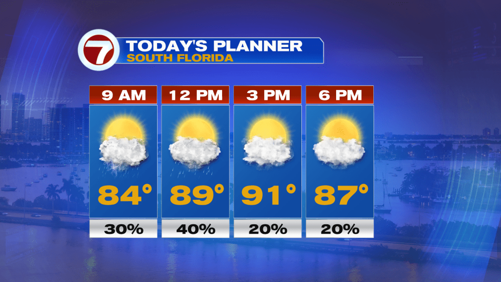Com poucas chuvas previstas para hoje, o sul da Flórida verá um pouco mais de sol, no entanto, estará muito úmido. E embora as temperaturas hoje permaneçam “típicas”, estará muito mais quente e bastante úmido por causa da alta umidade. As temperaturas sentidas podem chegar a 110° por longos períodos de tempo. Por causa disso, o Serviço Nacional de Meteorologia emitiu um alerta de calor para todo o sul da Flórida que durará grande parte do dia. Parece que finalmente viramos a esquina e passamos de condições tempestuosas para nossas condições típicas de vapor.