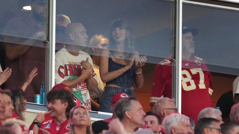Taylor Swift antes do início do jogo entre Chiefs e Ravens em Kansas City, Missouri. AP Photo / Ed Zurga