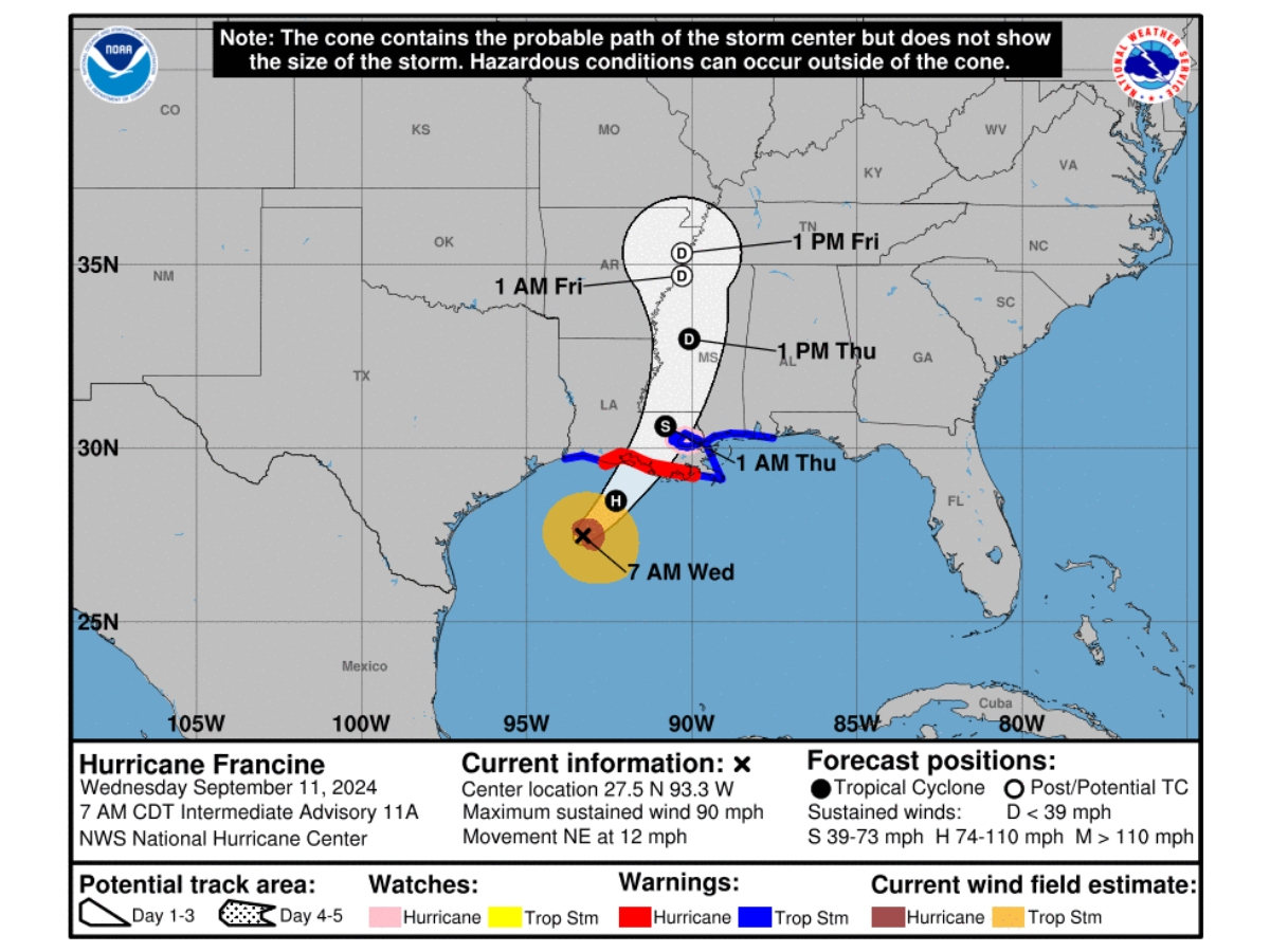 “Agora é a hora de finalizar os planos de evacuação, proteger as casas e reunir suprimentos de emergência. Não espere até o último minuto — Francine está se intensificando rapidamente e uma ação imediata é crítica”, disse a agência disse em um comunicado à imprensa.