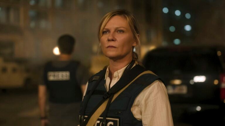 Kirsten Dunst em uma cena de “Guerra Civil”. A24
