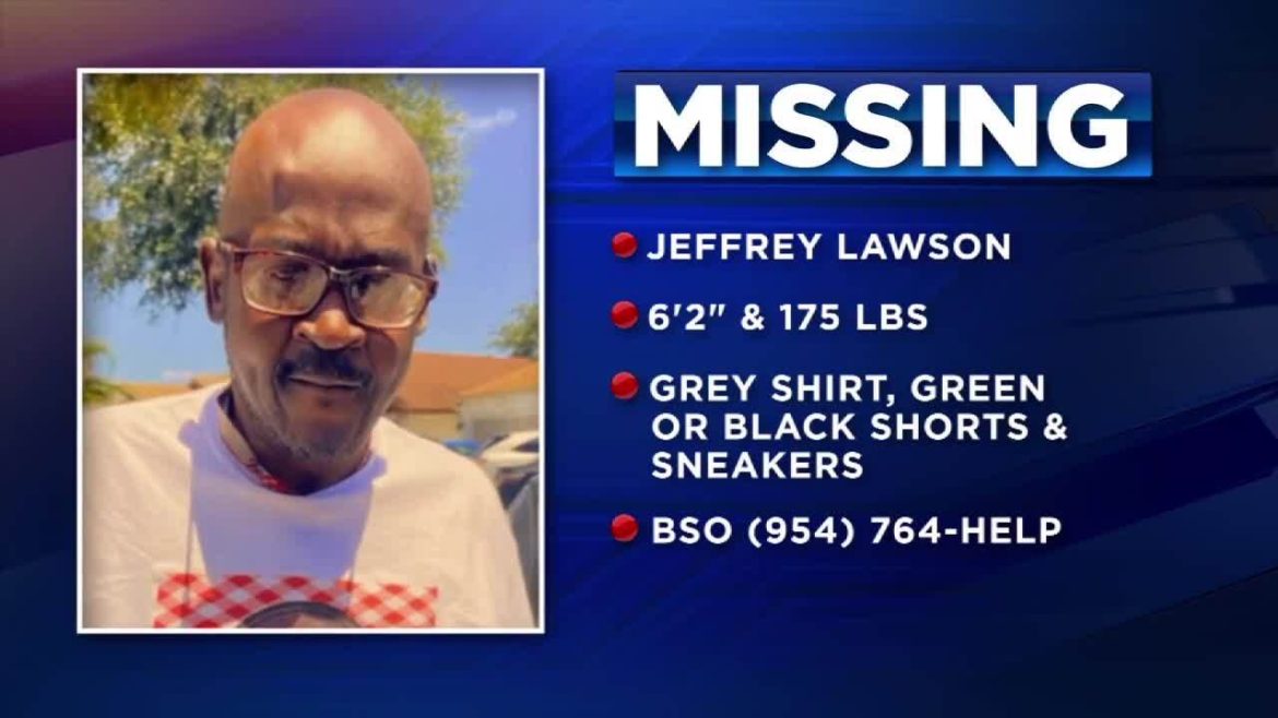 Jeffrey Lawson, de 56 anos, foi visto pela última vez por volta das 22h de quinta-feira, perto da First Street e Colley Way, em North Lauderdale.