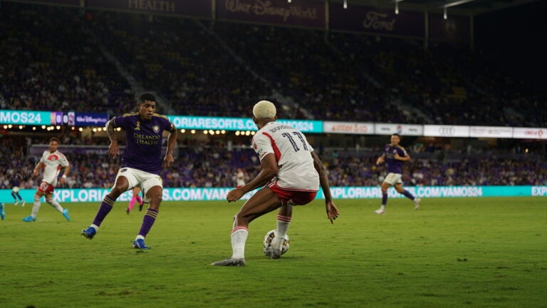 Dylan Borrero durante o confronto do Revolution contra o Orlando City. Por meio da Revolução da Nova Inglaterra