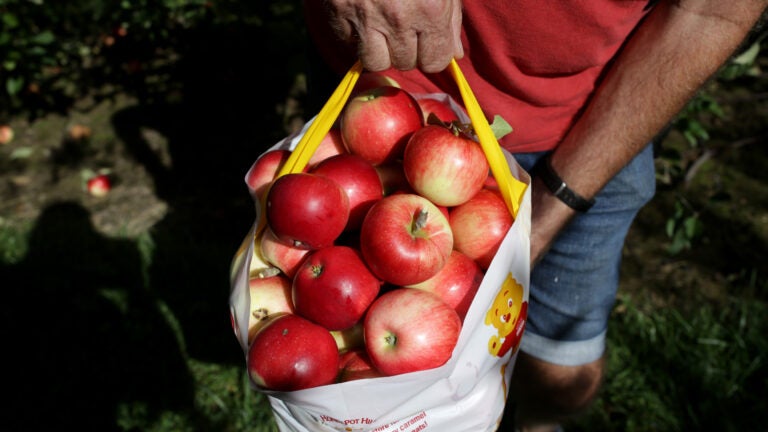 Um saco de maçãs Akane em Honey Pot Hill Orchards em 2020. Cortesia de Jonathan Wiggs/Equipe Globe