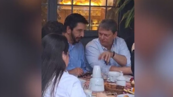 Após a visita ao mercado, o prefeito e o governador se sentaram para tomar café e comer doces em uma padaria de luxo anexa ao mercado, acompanhados de uma série de aliados.
