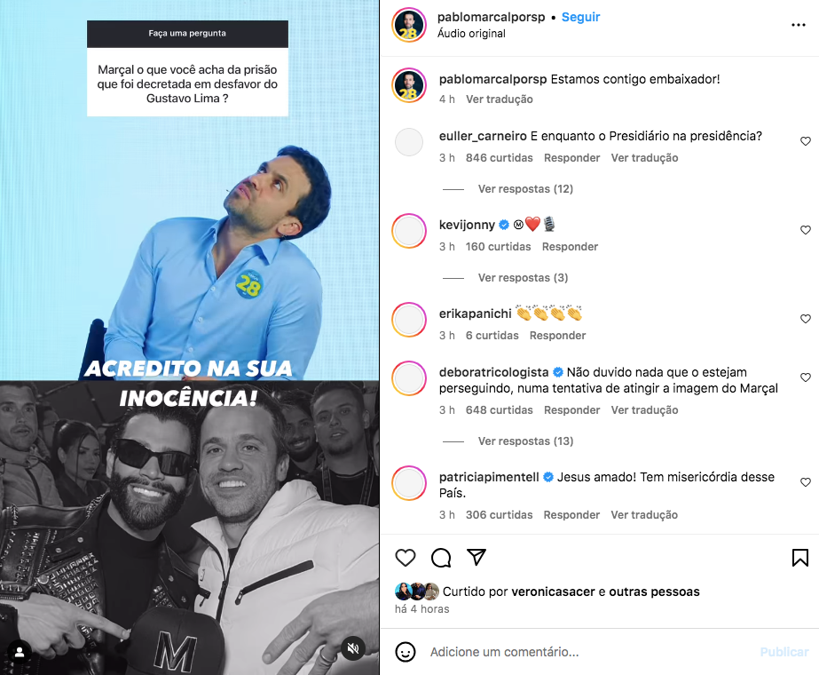 Marçal falou ainda que conversou com Gusttavo Lima por telefone e que o cantor está tranquilo. O candidato acredita que o pedido de prisão vai cair nas próximas horas.