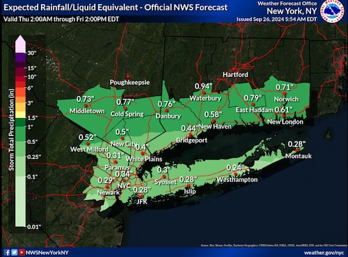 É provável que caia entre um quarto e meia polegada de chuva no nordeste de Nova Jersey no início da tarde de sexta-feira.Serviço Nacional de Meteorologia