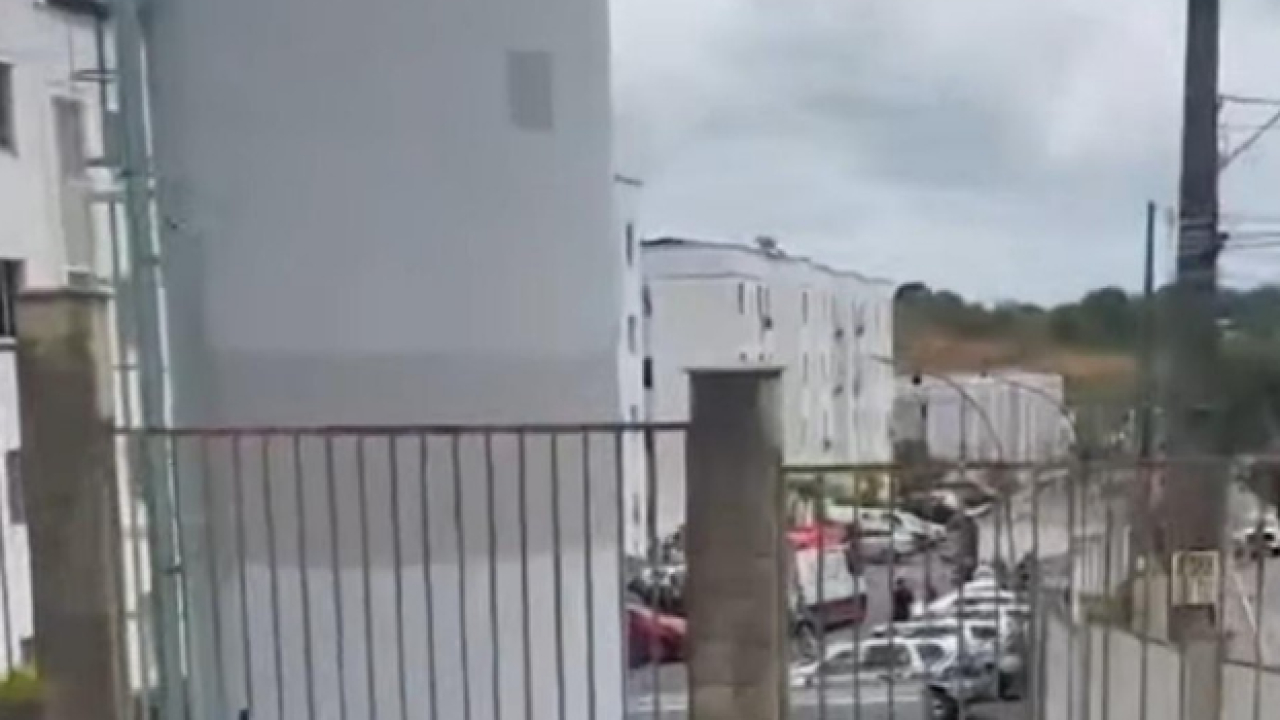 A bala disparada pelo homem atingiu a janela de um dos apartamentos, ferindo uma moradora com os estilhaços.