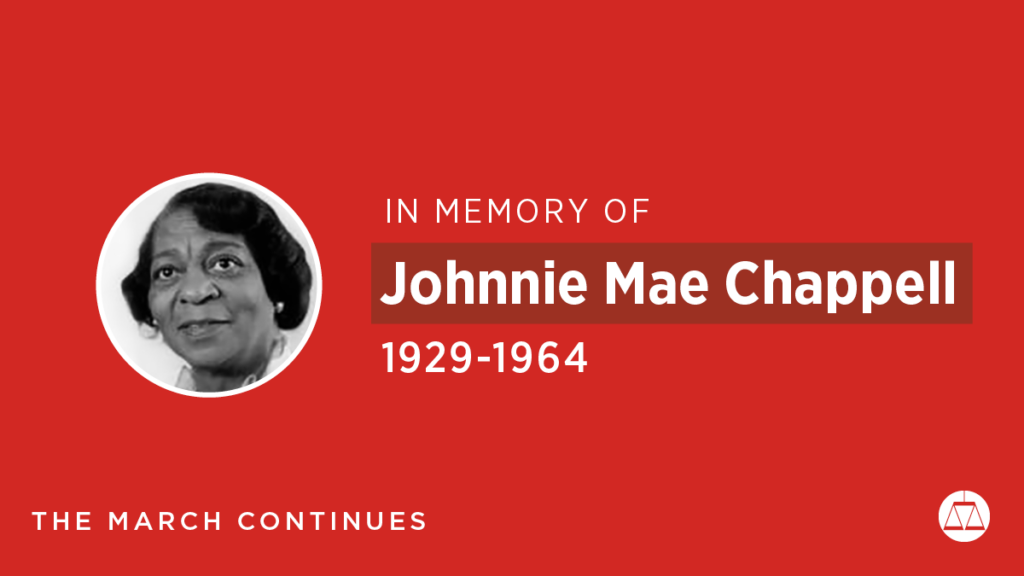 O Centro Memorial dos Direitos Civisum projeto do Southern Poverty Law Center, homenageou Chappell em seu site no Facebook. O nome dela também é entre dezenas de outros em uma parede do Centro Memorial dos Direitos Civis do Southern Poverty Law Center.