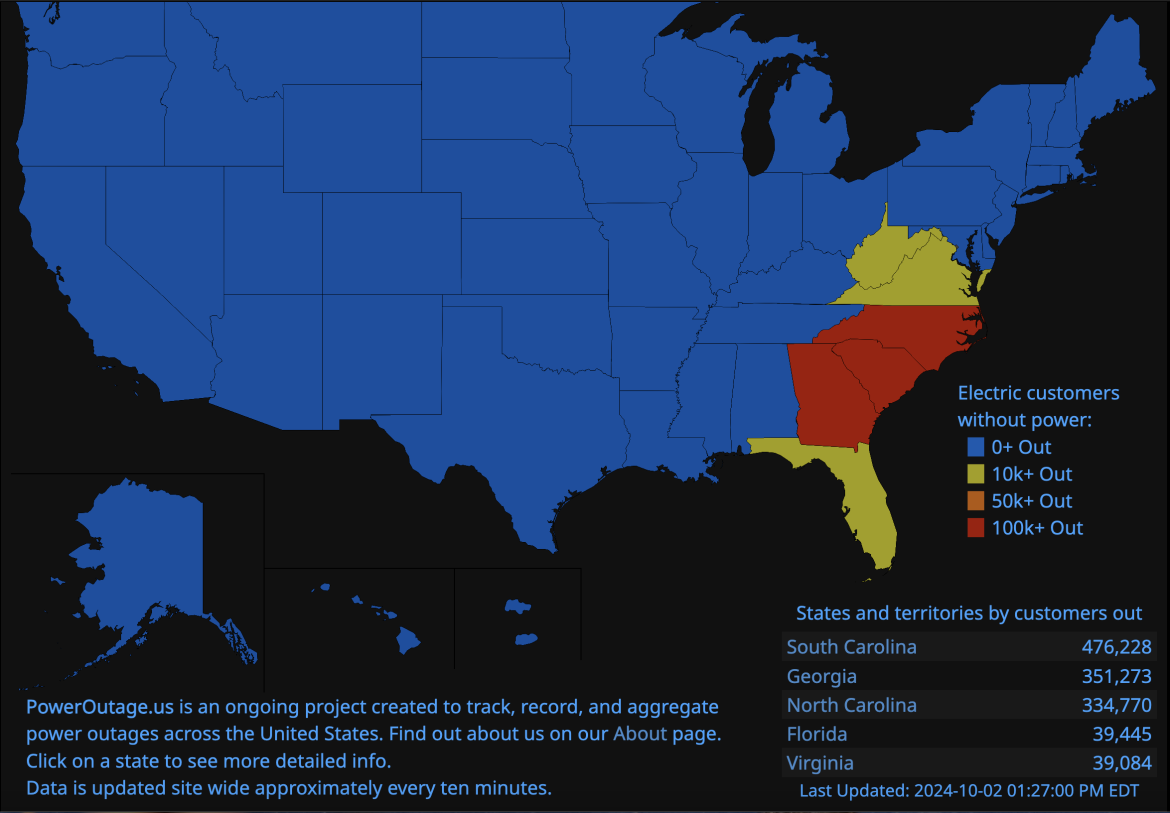 A Guarda Nacional da Flórida está agora ajudando vítimas nas Carolinas e no Tennessee. Chama-se “Operação Blue Ridge” e a missão é levar os moradores da Flórida que possam estar presos nesta região de volta à Flórida. Eles também transportam suprimentos essenciais para as vítimas nas montanhas Blue Ridge.